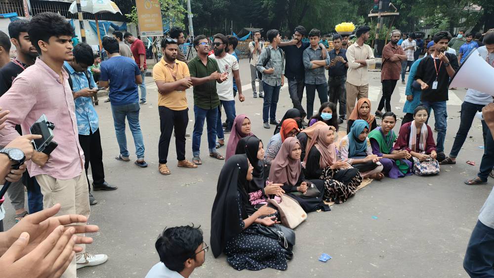 কাকরাইল মোড়ে এখনও অবস্থান করছে জবির আন্দোলনকারী শিক্ষার্থীরা