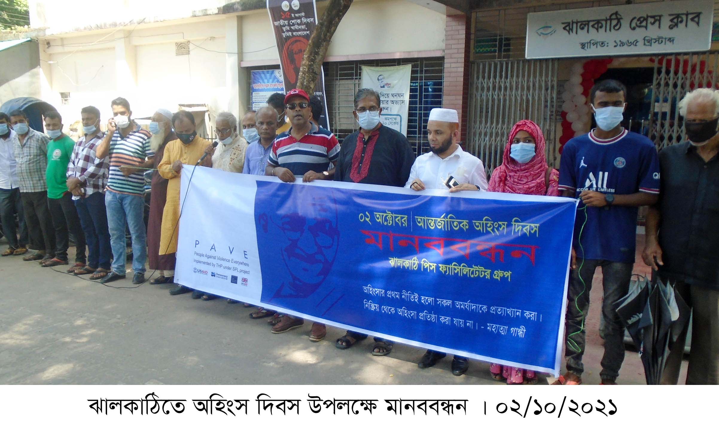 ঝালকাঠিতে অহিংস দিবস উপলক্ষে মানববন্ধন