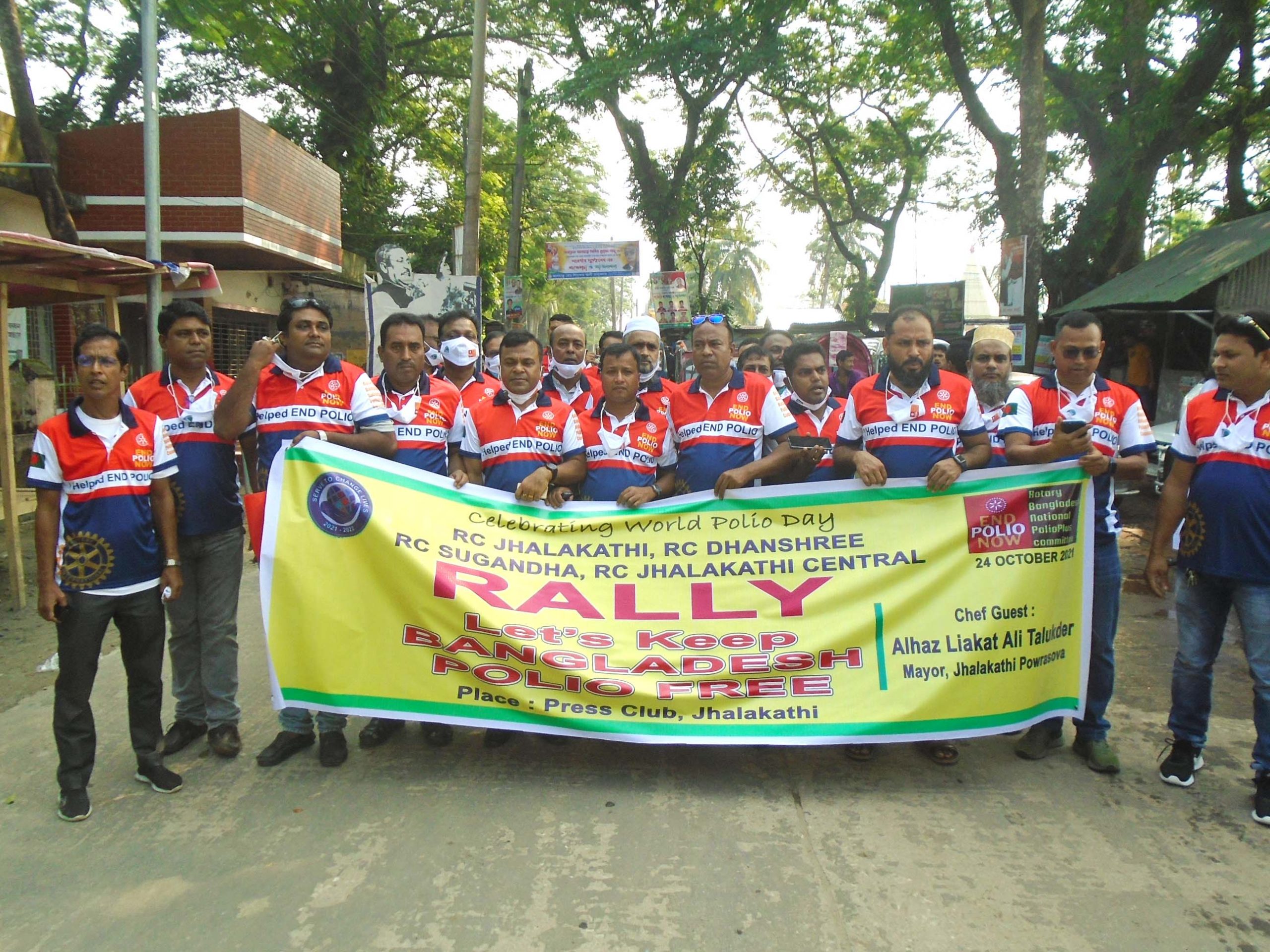 বিশ্ব পোলিও দিবস উপলক্ষে ঝালকাঠিতে বর্ণাঢ্য র্যালির আয়োজন করা হয়েছে। ঝালকাঠির প্রেস ক্লাব চত্বর থেকে রবিবার সকাল ১০টায় র্যালি শুরু হয়। র্যালিটি শহর ঘুরে জেলা প্রশাসক কার্যালয় এসে শেষ হয়।