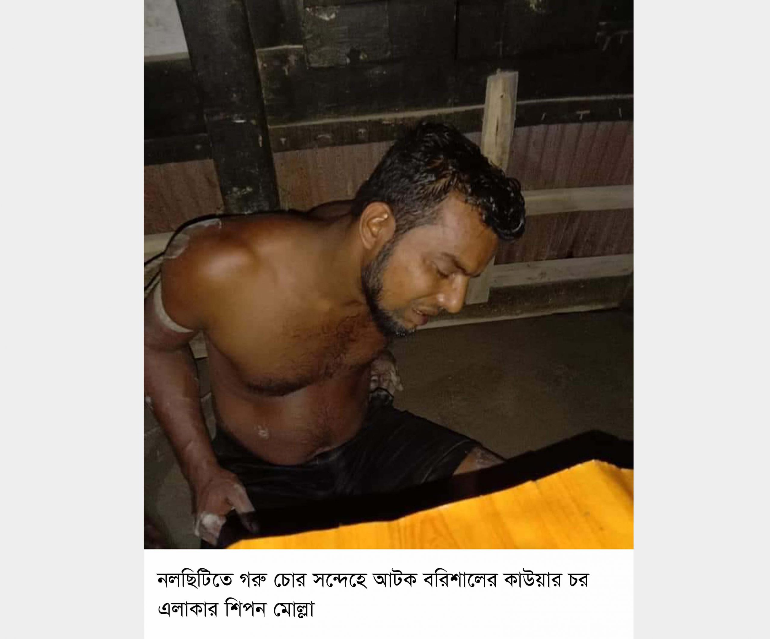 স্থানীয়রা জানায়, দক্ষিণ ভবানীপুর গ্রামের আবদুল গণি খলিফার বাড়ির গোয়াল ঘরে রাত দেড়টার দিকে একদল গরু চোর হানা দেয়। বিষয়টি পরিবারের লোকজন টের পেয়ে চিৎকার শুরু করে। এ সময় আশেপাশের লোকজন এসে মো. শিপন মোল্লা (৪০) নামে এক ব্যক্তিকে আটক করে। আটক হওয়া ব্যক্তি বরিশাল বন্দরের কাউয়ার চর এলাকার শাহ আলম মোল্লার ছেলে।