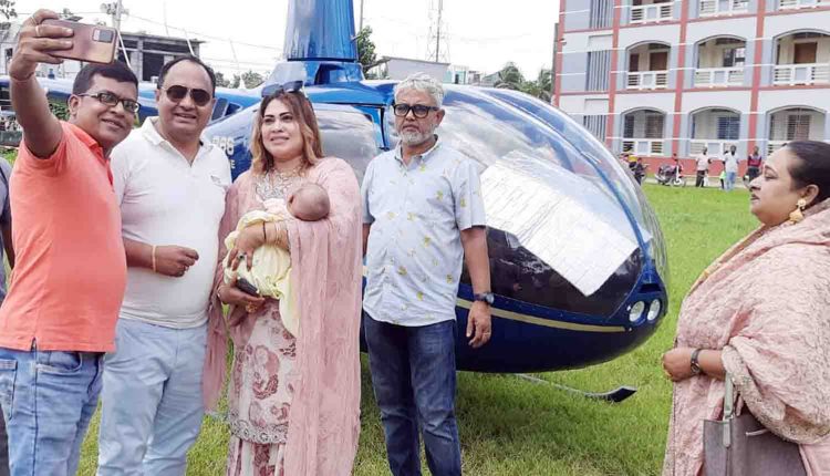 স্ত্রী-সন্তানদের হেলিকপ্টারে চড়িয়ে শনিবার বেলা এগারোটার দিকে নিজ গ্রাম ঘুরিয়ে দেখিয়েছেন জেলার গৌরনদী উপজেলার একসময়ের তুখোর ছাত্রলীগ নেতা ও বর্তমান নেদারল্যান্ড আওয়ামী লীগের সাধারণ সম্পাদক মুরাদ খান।