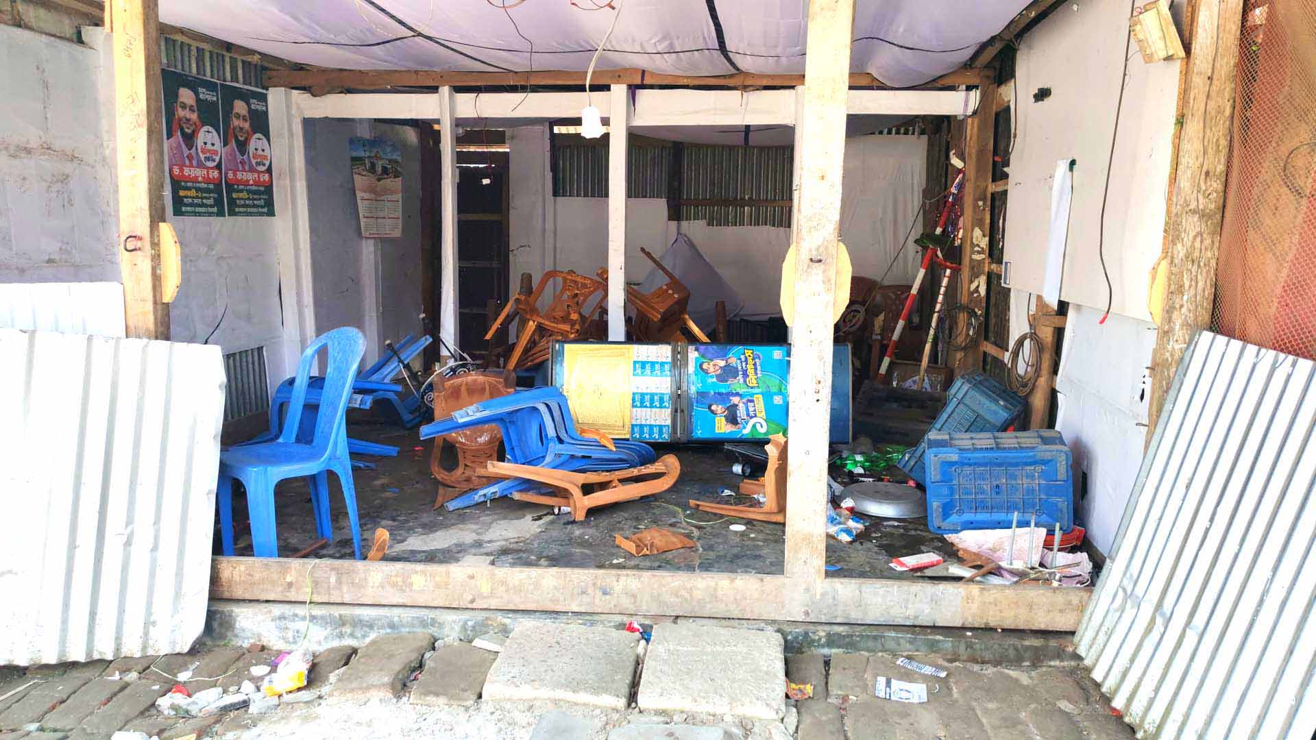 অধ্যক্ষ হারুন অর রশিদ জানান, বিএনপি নেতা কামাল ও জনির নেতৃত্বে আমার বসতঘরে হামলা ও ভাংচুর চালায়। এ সময় বাথরুম ও পানির ট্যাংকি কুপিয়ে নষ্ট করে। পরবর্তীতে কুড়ের কুট (গো খাবার) আগুন দিয়ে পুড়িয়ে দেয়।