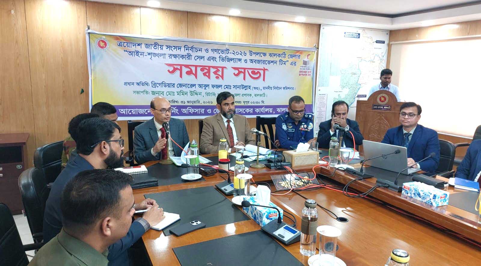 রিটার্নিং কর্মকর্তা ও জেলা প্রশাসক মো. মমিন উদ্দিনের সভাপতিত্বে সভায় উপস্থিত ছিলেন পুলিশ সুপার মিজানুর রহমান, আঞ্চলিক নির্বাচন কর্মকর্তা মো. ফরিদুল ইসলাম, সেনাবাহিনীর ক্যাম্প কমান্ডার ইয়াসির আরাফাত সহ বিভিন্ন সরকারি দপ্তরের কর্মকর্তা, আইনশৃঙ্খলা বাহিনীর সদস্য এবং ভিজিল্যান্স ও অবজারভেশন টিমের প্রতিনিধিরা। এ সময় ভোটকেন্দ্রের নিরাপত্তা, ভিজিল্যান্স টিমের কার্যক্রম এবং যেকোনো পরিস্থিতিতে দ্রুত সিদ্ধান্ত গ্রহণের ওপর গুরুত্ব দেওয়া হয়।